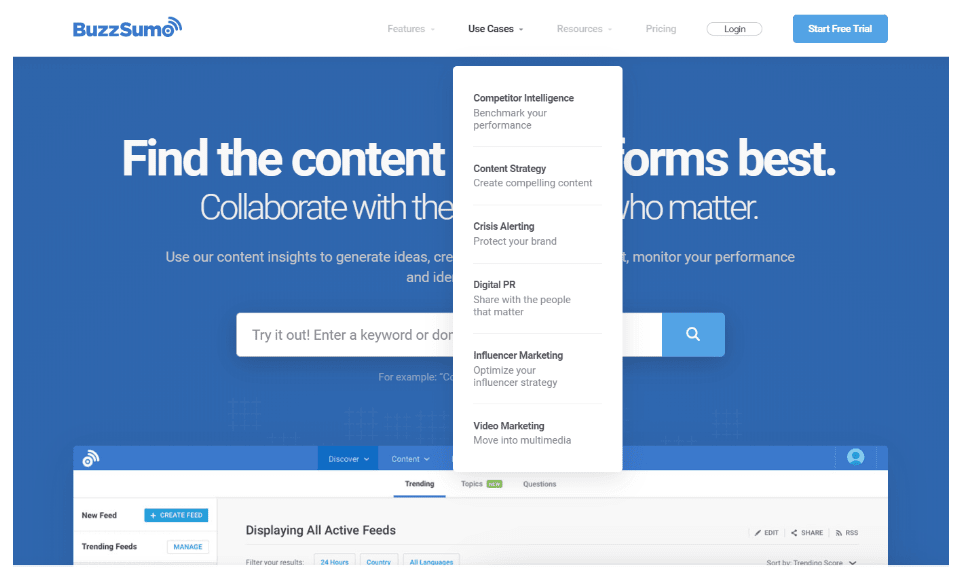 This app differs in that it primarily focuses on content analysis, however, it also acts as a social listening tool. You are able to track engagement and links across content, including those posted through social media. BuzzSumo allows you to set up custom email alerts to meet your specific marketing needs based on brand mentions, keyword mentions, backlinks, content from a website, and even competitor mentions. Because BuzzSumo crawls content, it’s far more likely to bring up results within blog content online, a review trend that is gaining popularity.