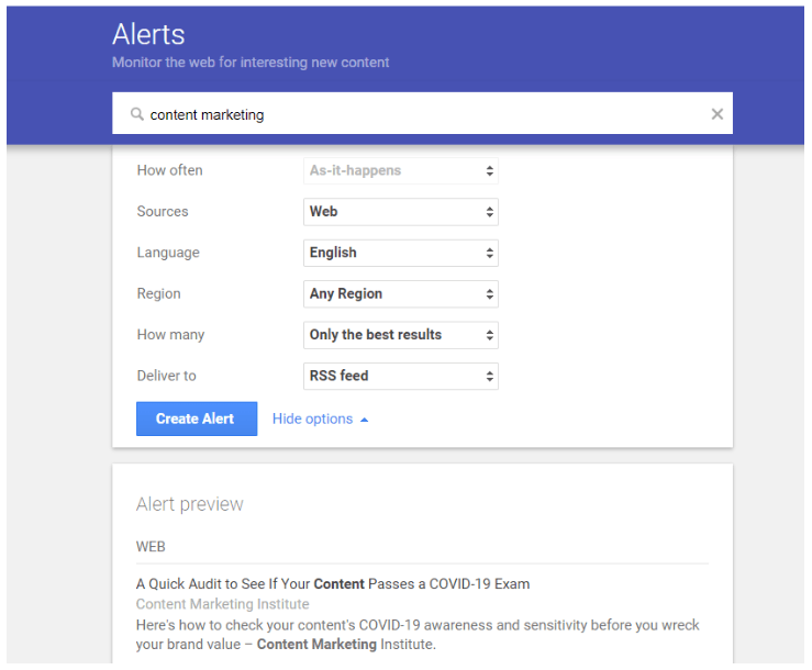 Google Alerts It’s simple to set up Google Alerts for your company name, specific products, niche industry terms, and more. Just type in your query and specify how frequently you want alerts, from where, and to what email address. Vwalaa…you instantly see what the Google machine sees and stay up to date on what people are saying about your brand online.