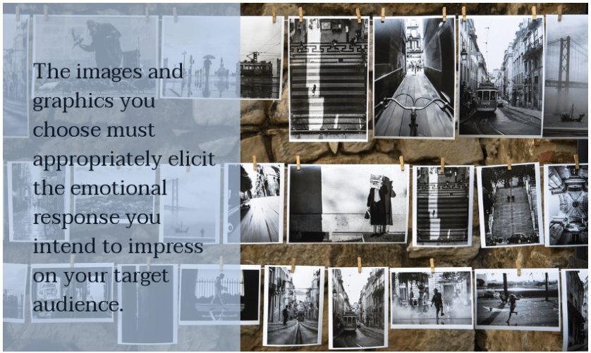 any blog or website are a vital tool to drive audience engagement. This is especially important if your product or service cannot be visually promoted. The images and graphics you choose must appropriately elicit the emotional response you intend to impress on your target audience.